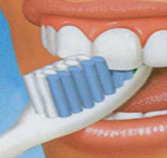 • Pour les dents de devant, la brosse est placée verticalement